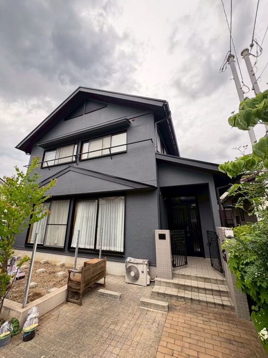 もともとは明るいホワイト系の外壁でしたが、今回は シックなダークトーン を採用。